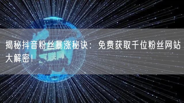 随着互联网的普及和社交媒体的兴起,抖音已经成为人们日常生活中不可或缺的一部分。许多人在抖音上展现自己的才华和创意,通过短视频吸引大量粉丝关注。那么,如何快速获取大量粉丝呢?本文将为你揭示抖音粉丝暴涨的秘诀。