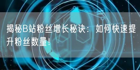 你是否在B站苦苦挣扎,希望自己的频道能够吸引更多粉丝?如果你对如何快速提升粉丝数量感到困惑,那么这篇文章将为你揭示B站粉丝增长的秘诀。