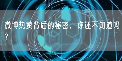 微博热赞背后的秘密是一个值得我们深入探索的领域。通过了解社交影响力、推广策略和网络营销的手法,我们可以更好地了解微博热赞的真相。同时,我们也需要保持理性和客观的态度,不被表面的热闹所迷惑。希望本文能带你一起揭开微博背后的秘密,更好地了解这个热闹的社交网络世界。