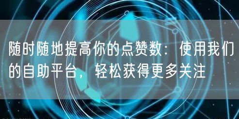 在这个数字化时代,社交媒体的影响力日益增强。我们都在努力通过各种方式吸引更多的关注,提高自己的影响力。其中,点赞数是衡量个人影响力的重要指标之一。那么,如何随时随地提高你的点赞数呢?答案就在我们的自助平台。