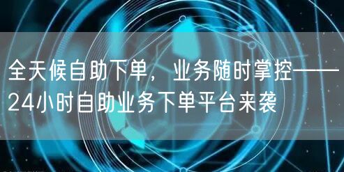 总之,24小时自助业务下单平台是一个全新的服务模式,它让业务随时掌控,让用户享受便捷、高效、安全的下单体验。相信在不久的将来,这种全新的服务模式将会引领行业新潮流,为广大用户带来更多的便利和惊喜。